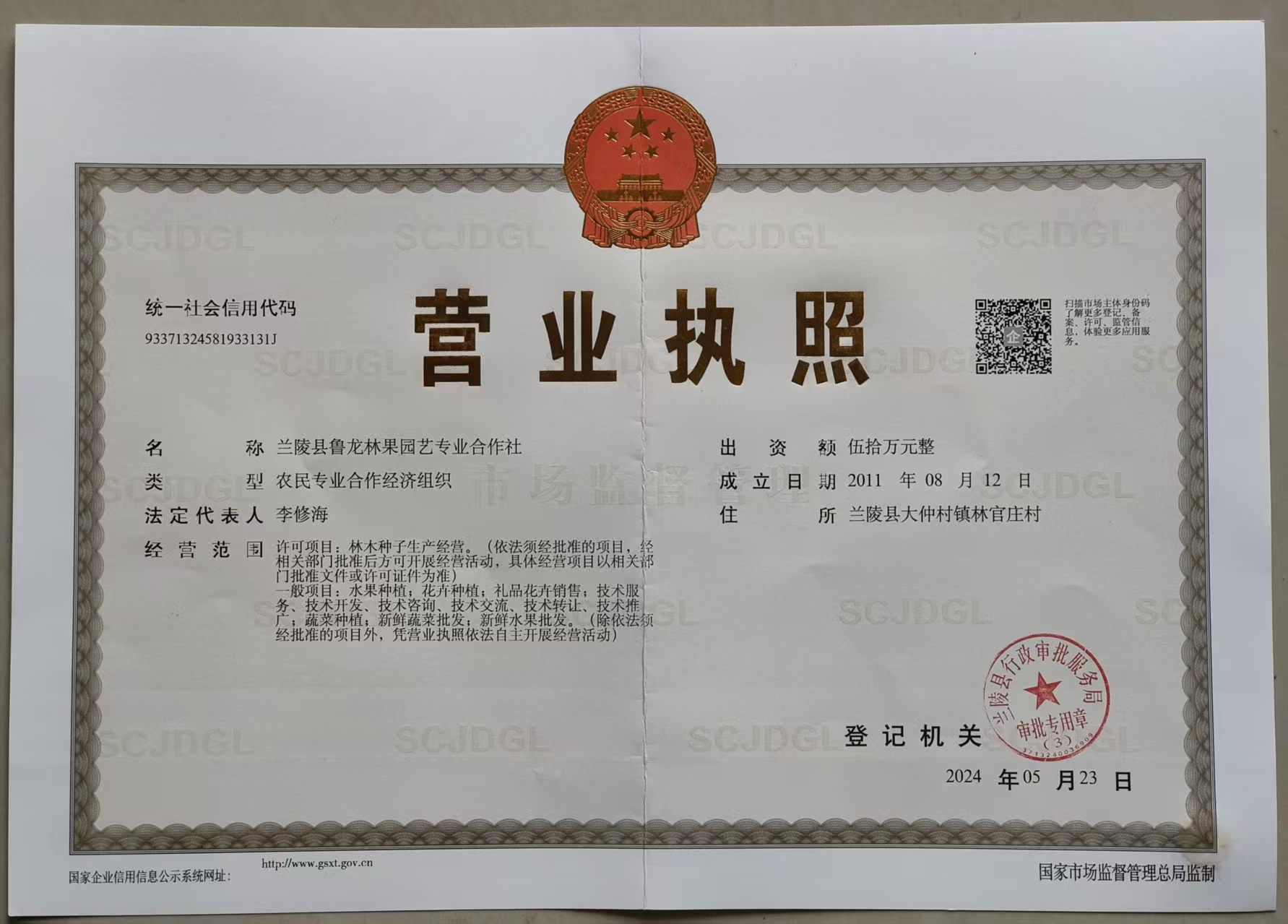 兰陵县鲁龙林果园艺专业合作社